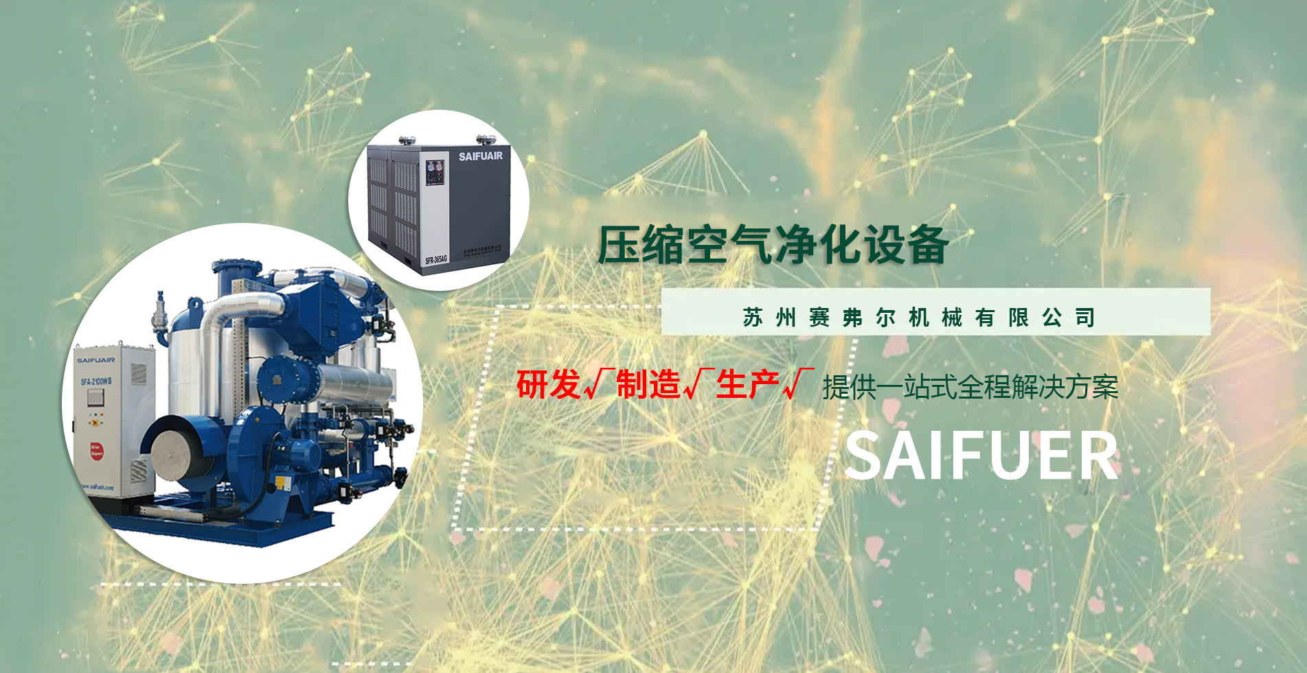 蘇州賽弗爾機(jī)械有限公司于2010年12月22日正式成立,根據(jù)企業(yè)戰(zhàn)略布局,于2019年在無(wú)錫宜興成立賽弗爾氣體技術(shù)(江蘇)有限公司,注冊(cè)資本2000萬(wàn)元。作為壓縮空氣凈化設(shè)備的專(zhuān)業(yè)生產(chǎn)制造基地,賽弗爾主要從事壓縮空氣凈化設(shè)備的研發(fā)、制造、營(yíng)銷(xiāo),系列產(chǎn)品有冷凍式干燥機(jī)、無(wú)熱吸干機(jī)、微熱吸干機(jī)、組合式干燥機(jī)、壓縮熱再生吸干機(jī)、鼓風(fēng)加熱吸干機(jī)、精密過(guò)濾器、預(yù)冷機(jī)組、自潔式過(guò)濾器等核心產(chǎn)品。賽弗爾積極響應(yīng)國(guó)家環(huán)保政策 ,大力發(fā)展節(jié)能產(chǎn)品,全力推動(dòng)客戶(hù)節(jié)能降耗、綠色發(fā)展。產(chǎn)品廣泛應(yīng)用于電子、化纖、石油、化工、造紙、汽車(chē)、冶金、電力、食品、環(huán)保、制藥等行業(yè)。